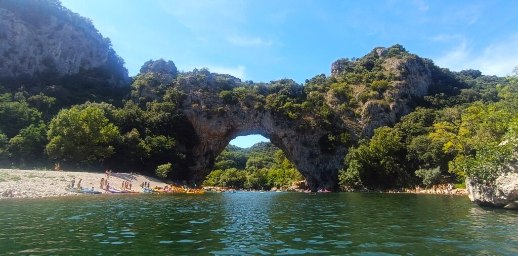 Tras hacer noche en Tarbes, nos dirigimos a la localidad francesa de Vallon-Pont-d´Arc ubicada en el sur de la región Ródano-Alpes (5h40), a donde llegamos sobre las 15h. Tras ubicar nuestra furgo en el Camping des Tunnels (https://www.ardeche-vacance.com) y con un calor de la ostia, la única opción posible era pegarse un buen chapuzón en el contiguo rio Ardéche con acceso directo desde el camping. Verdaderamente un lugar perfecto para refrescarse. De nuevo en el camping nos acercamos al edificio que está junto a la recepción para informarnos sobre las diferentes excursiones en kayak.
