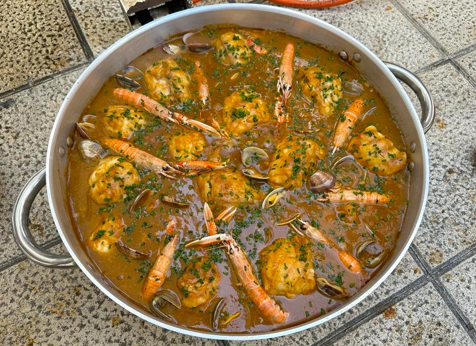 CALDERETA DE RAPE, CIGALAS Y ALMEJAS (12 personas)